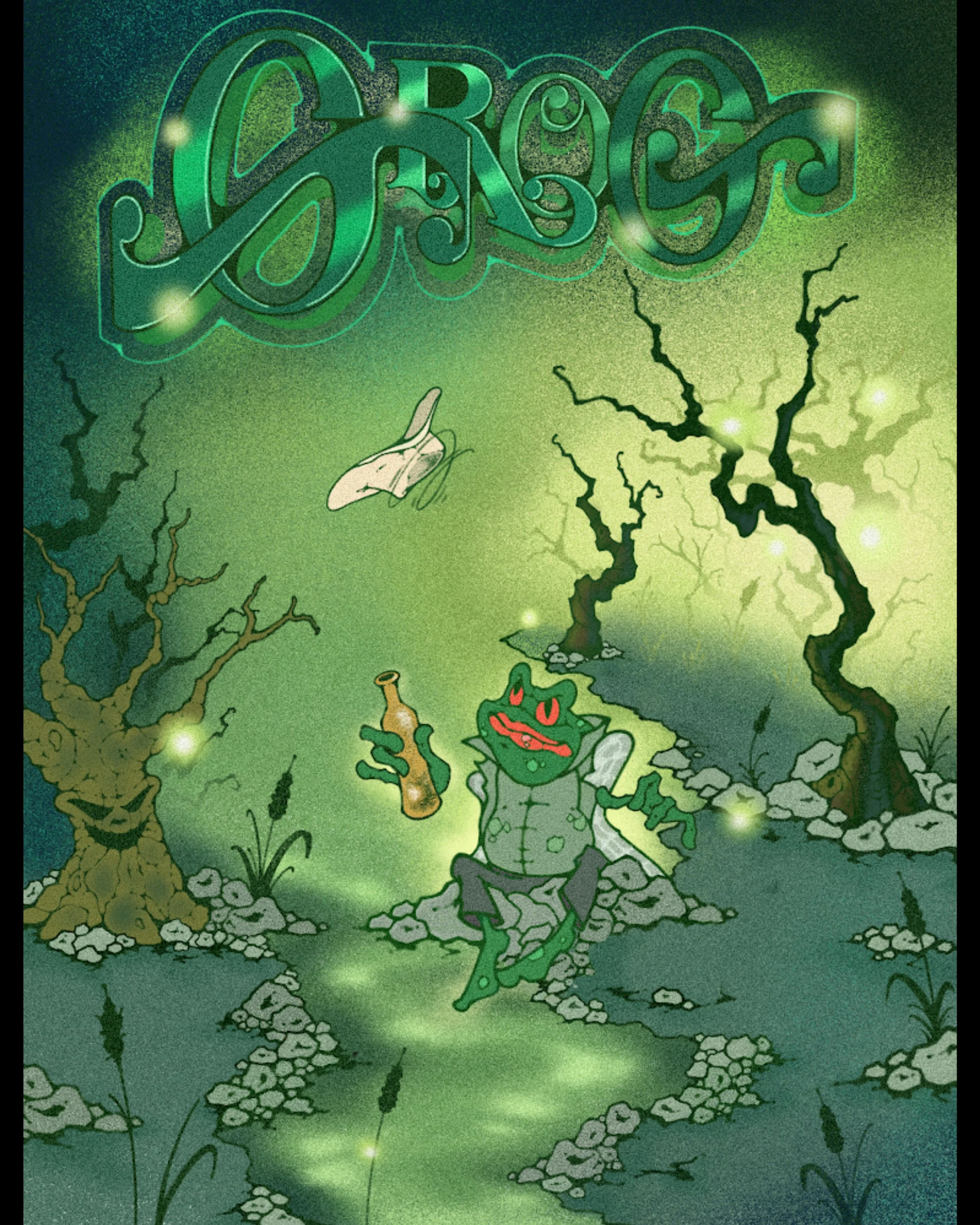 Deep in a fetid swamp on the edge of reality, a delirious vagrant named Jenkins is thrust into a quest for an unholy elixir known only as "grog." Guided by cryptic visions, a babbling frog-man, and a cosmic thirst, GROG is a psychedelic piss-soaked fairy tale of addiction and trusting your gut.
